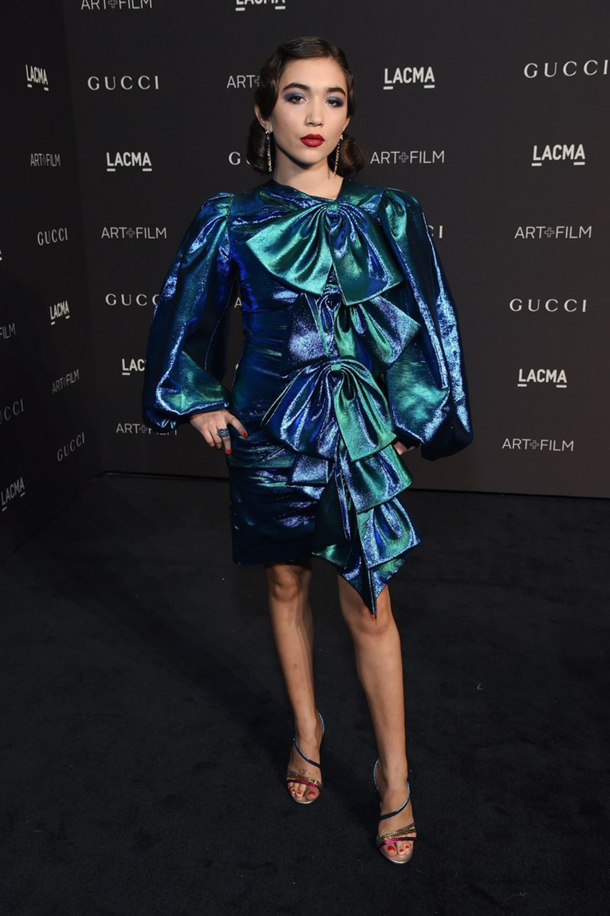 For less obvious sparkles but more fashionable attire, Rowan Blanchard in Gucci is the look for you. We have for you the perfect eyeshadow palette for this occasion. Make sure you wear open heels to show some legs and add dangling earrings for a more formal look. Hollywood Glamour hairstyle is the perfect match for this outfit.