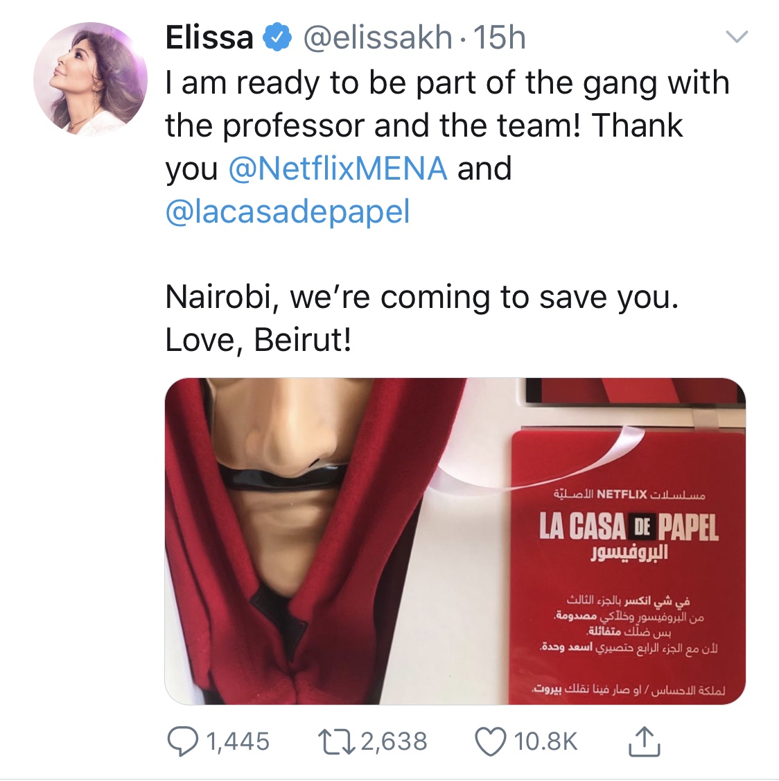 “I am ready to be part of the gang with the professor and the team! Thank you @NetflixMENA and @lacasadepapel