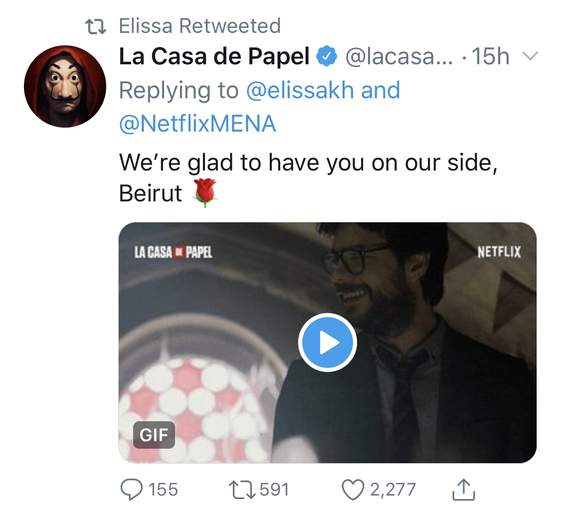 Love, Beirut!” Elissa said in a tweet on her official Twitter account.