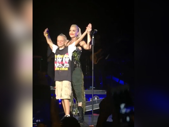 The singer noticed someone holding a sign saying “My son was bullied from 1st to 5th grade. He would come home every day upset, but he would go to his room, listen to your music and smile”. Gwen was so touched that she decided to invite the boy on stage. “Get up here right now!” said the beautiful artist. As the fan was lifted on stage, he couldn’t help but cry. Stefani hugged him and told him encouraging words.
