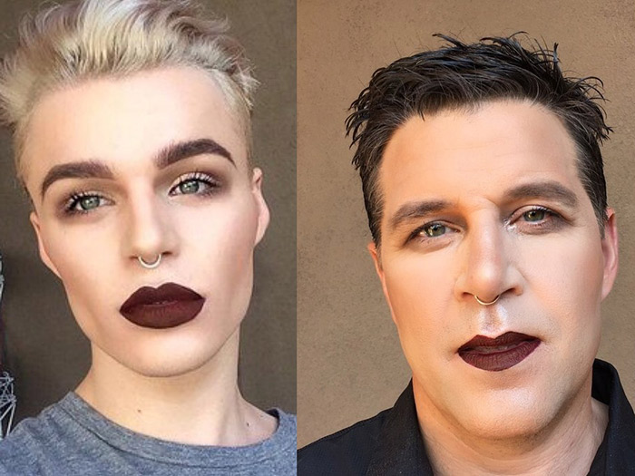 16 year old beauty blogger Spencer Claus frequently posts makeup tutorials, as he puts makeup on his own face, and he does it like a pro! But this time, he wasn’t alone: his father Scot joined him for a makeup photo shoot!
