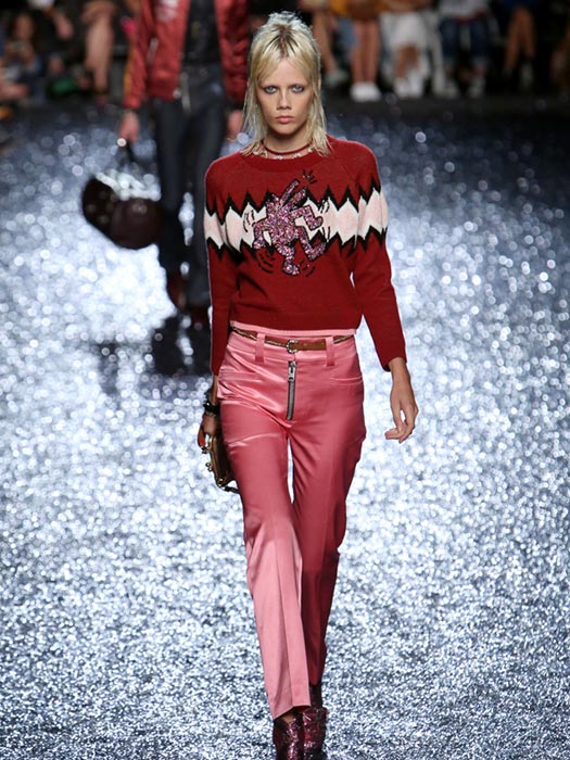 Combining pink and red is no longer a fashion faux-pas! Brandon Maxwell’s models turned heads during the Spring 2018 catwalk: millennial pink bag and blazer combined with a bright red blouse. And let’s not forget Coach 1941’s cool pink trousers paired with a casual red sweater.